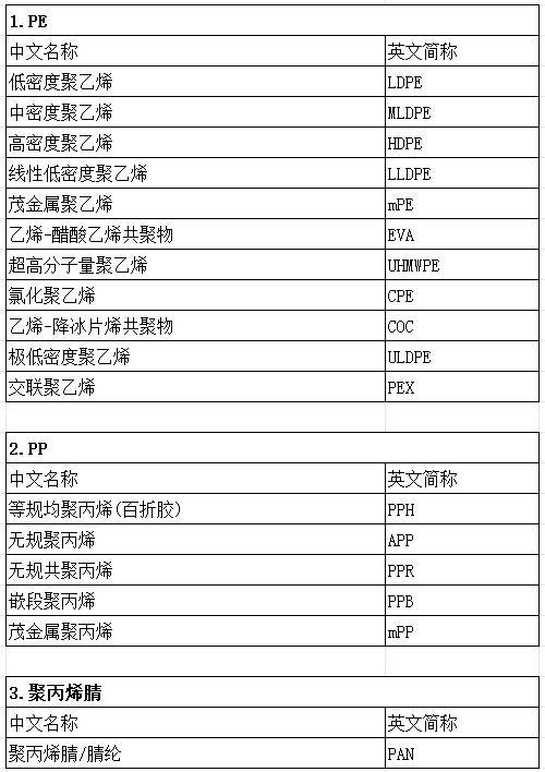 三氟莱带你了解:33类高分子材料中文名称与英文简称。。。